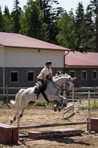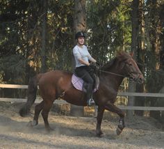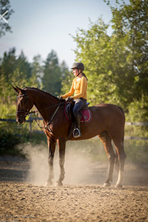 Tähti Ohjus (sh) s.2000, ruuna. i.Hilto e.Antinan Tähti sk.162cm, tummanpunarautias, ko IIIA,re 110 cm. Nimensä veroinen, kuumahko ratsastaa ja tallin stara. Miellyttävä ratsastaa ja käsitellä. Ei aivan aloittelijan ratsu, kisattu kansallista koulua , esteitä, kenttää kaikissa sijoittuen. 4-v laatuarvostelun paras estehevonen, v.2006 kasvattajakilpailun finaalissa esteissä 6. ja koulussa 4. sija. |